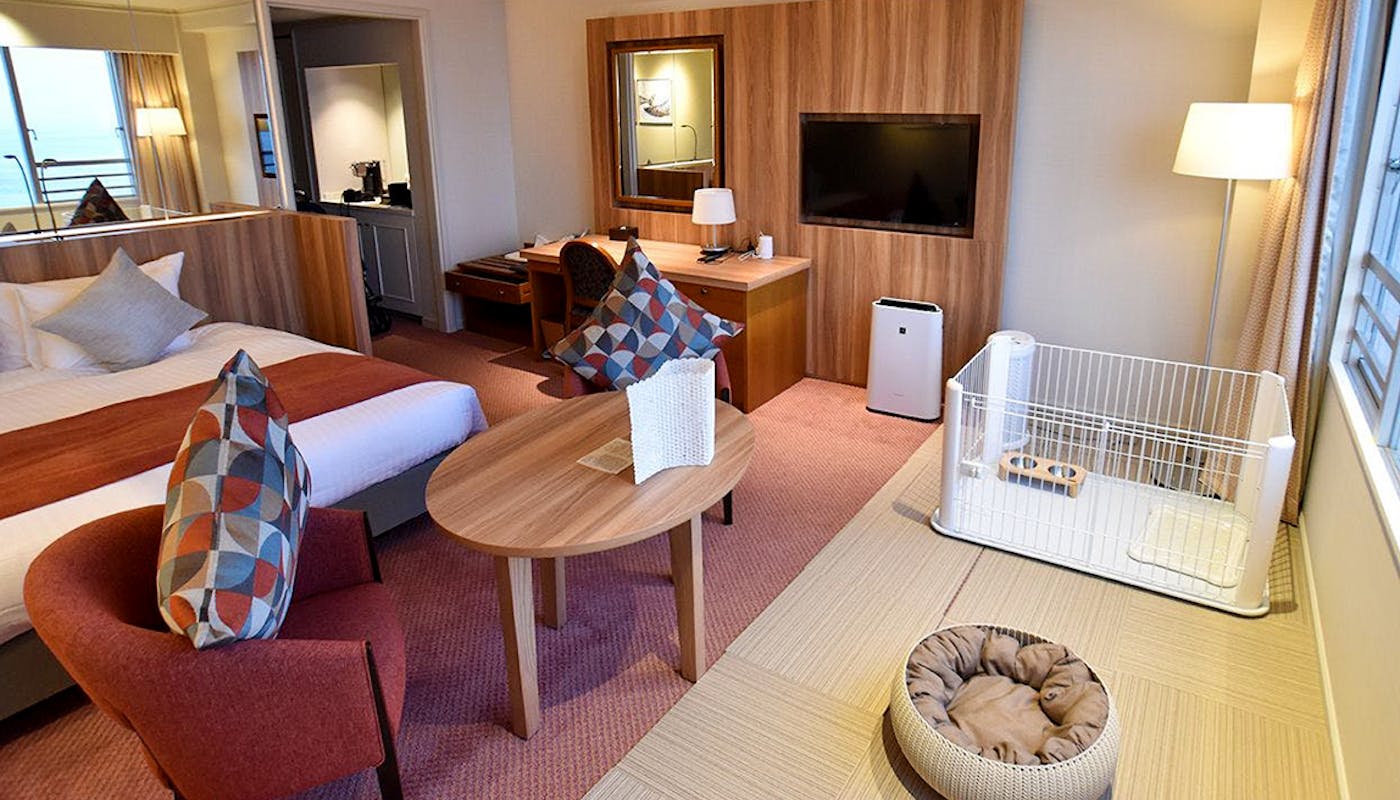 名勝「錦ヶ浦」に聳え立つリゾートホテル。「オーシャン・ウイング」、「ホライゾン・ウイング」、「スパリウムニシキ」の三大施設で構成されています。全客室オーシャンビューで、大浴場やレストランからの眺めも絶景‼客室や大浴場、レストランからの眺めが絶景‼温泉は、海とつながっているようなインフィニティデザインの「海へ続く湯船」と、3つの湯船を棚田のように並べた「断崖の棚湯」の2つの露天風呂、檜が香る内風呂ホテルで最も高い位置にある貸切展望風呂があります。お部屋の広さは40平米〜85平米2021年に多くの部屋が改装され、ドッグフレンドリールームも。お食事は、扇状に海に面したガラス張りのレストランフレンチや、ビュッフェ、海山の幸を盛り込んだ日本料理をお楽しみください。ホテルアクティビティでは、卓球・ビリヤード・射的のほか、トンボ玉やシルバーアクセサリー作り体験もあります。